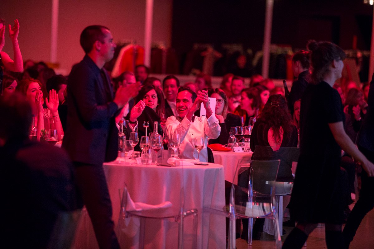 Menschen applaudieren in einem festlich dekorierten Raum während der European Excellence Awards in Hamburg.