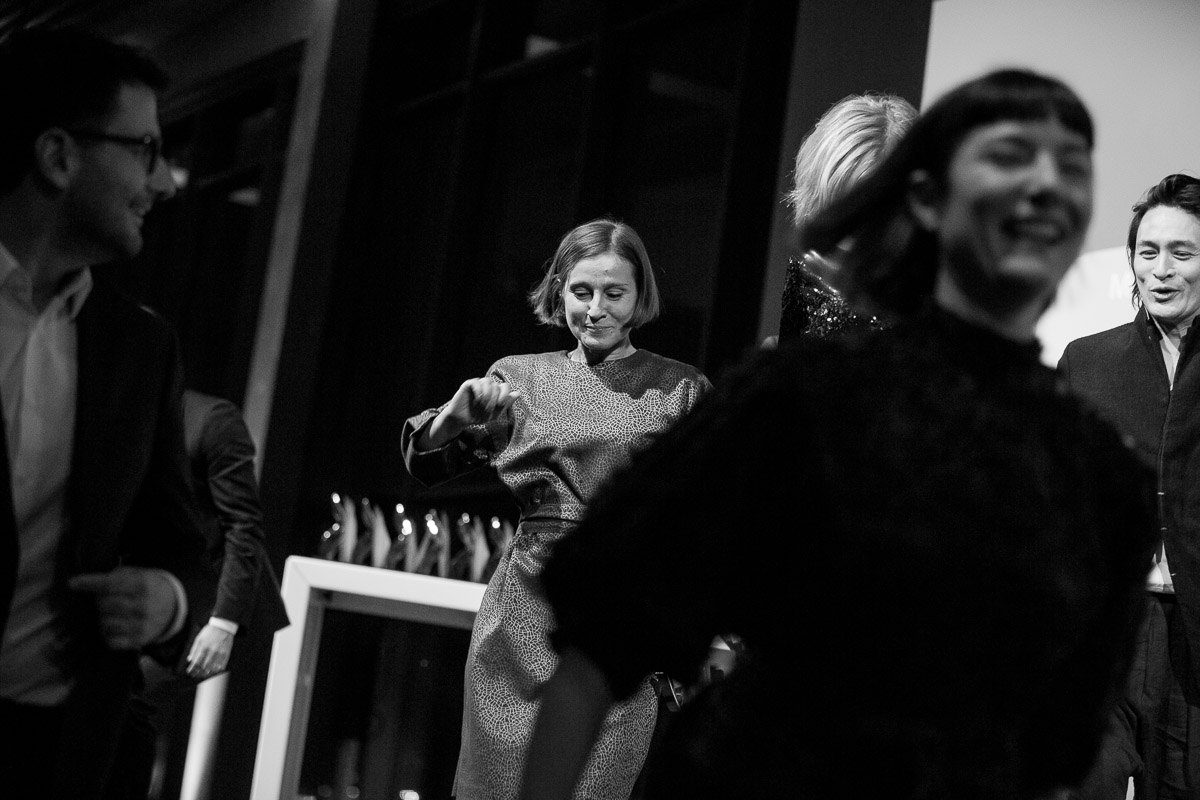 Menschen tanzen und feiern bei den European Excellence Awards in einem eleganten Veranstaltungsraum in Hamburg.