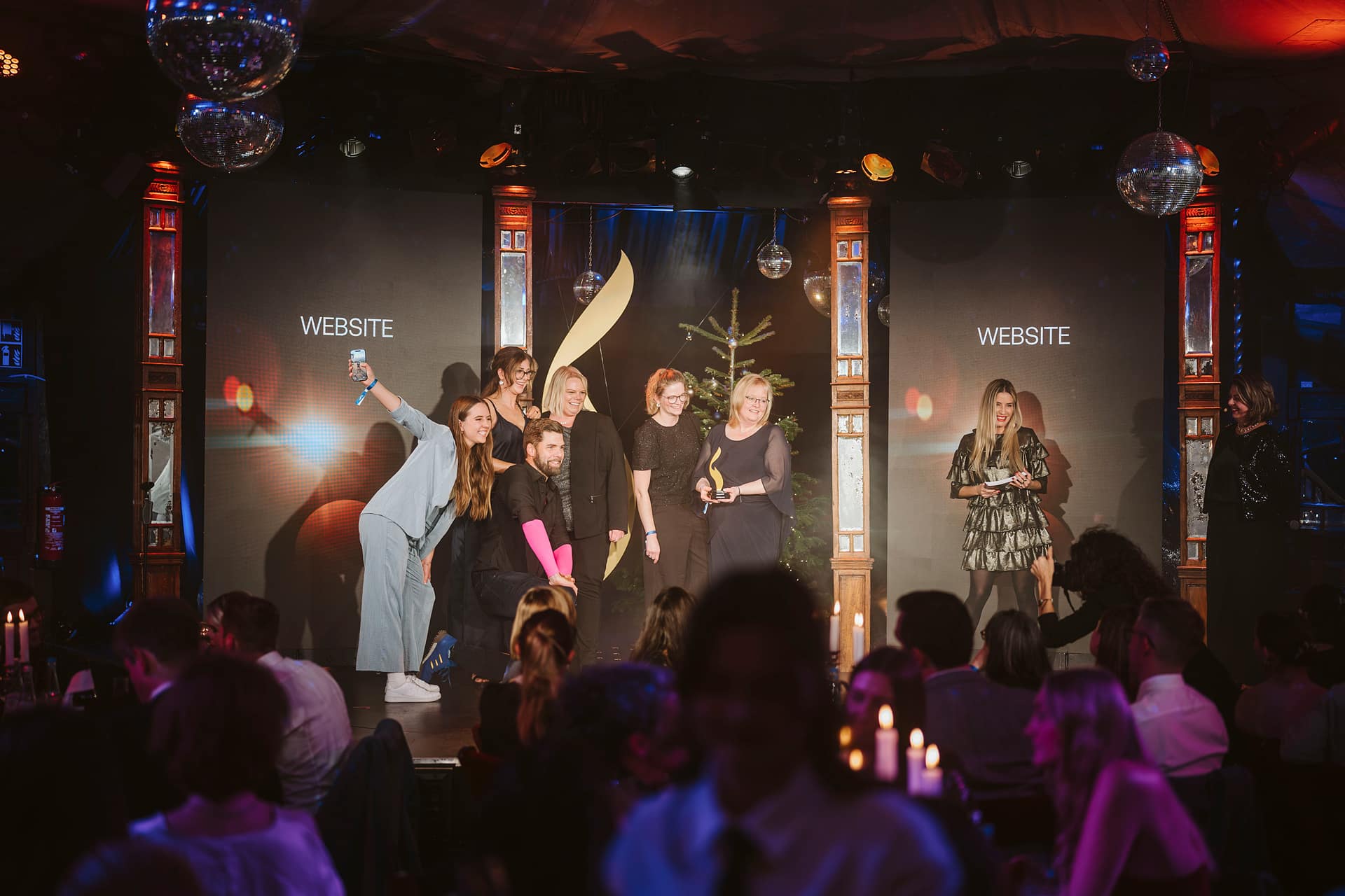 Gruppe von Menschen auf einer Bühne bei der European Excellence Awards, mit Auszeichnung und festlicher Atmosphäre.