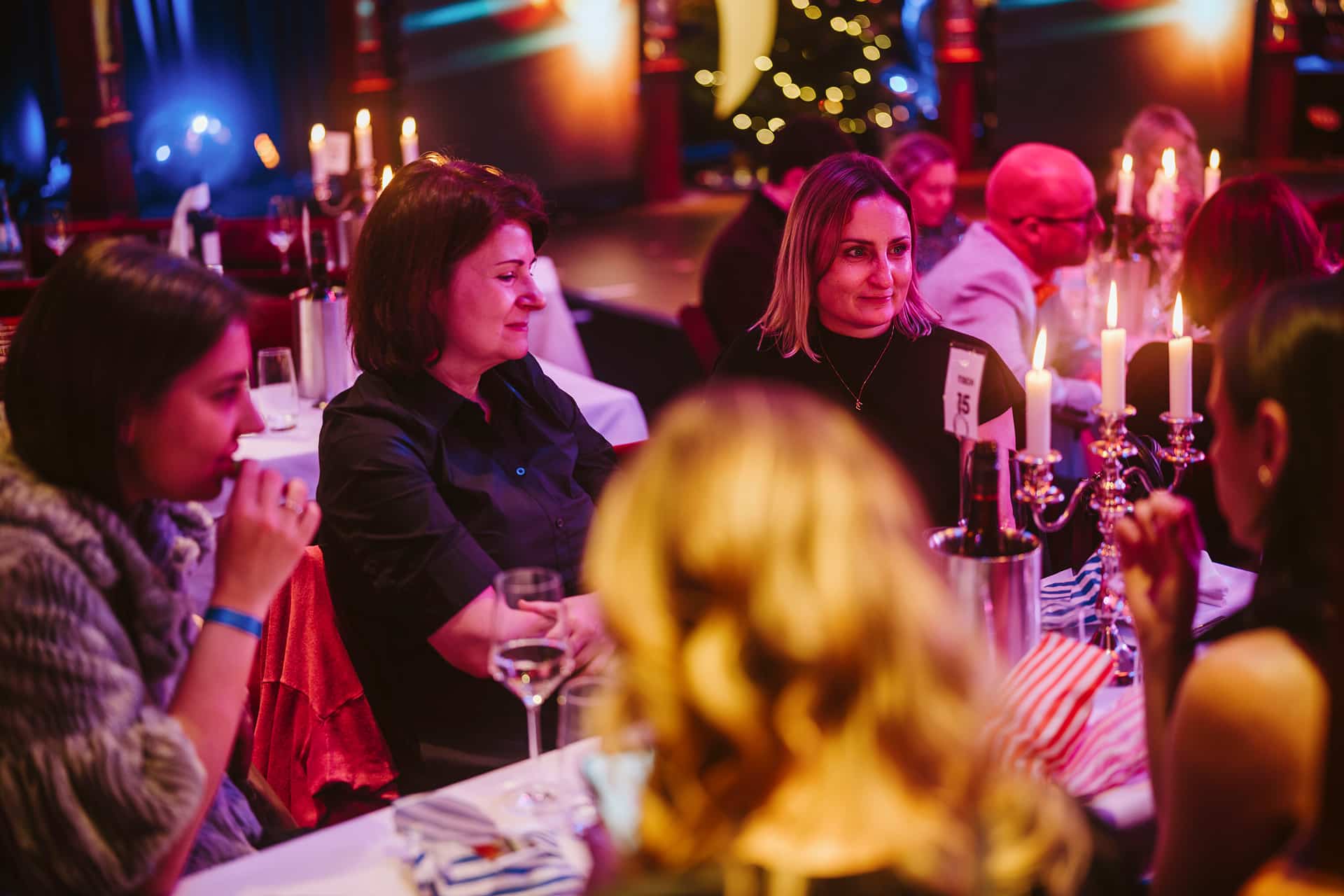Gäste sitzen an festlich gedeckten Tischen bei der European Excellence Awards-Veranstaltung, Kerzenlicht und Dekorationen...