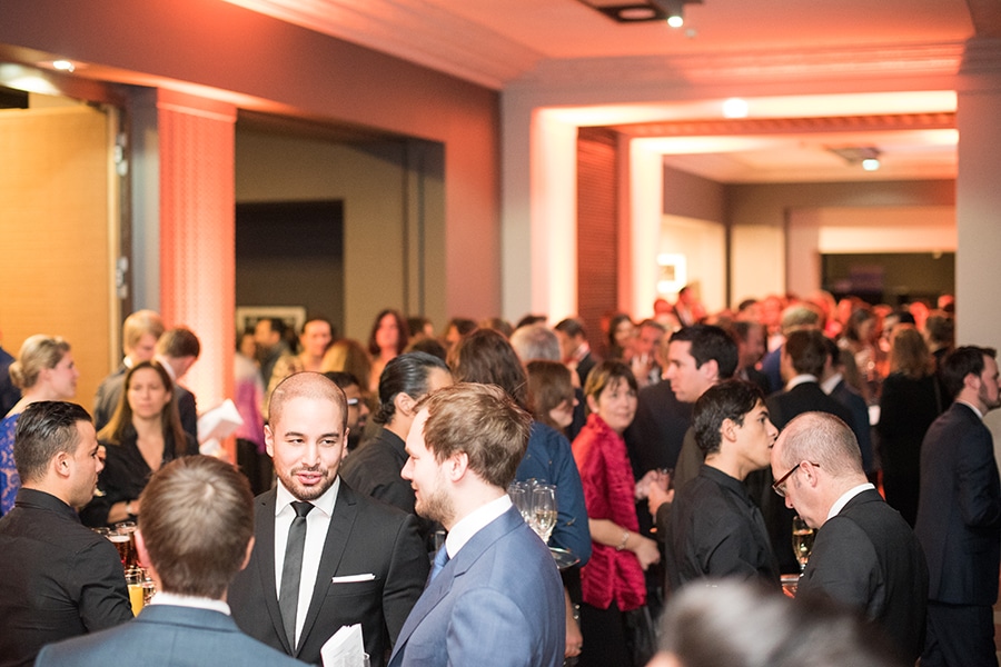 Menschenmenge in eleganter Abendkleidung bei der European Excellence Award 2014 Feier in Paris.