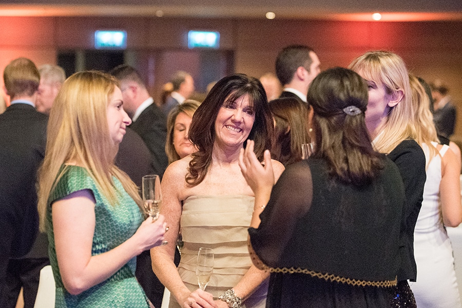 Menschen in formeller Kleidung unterhalten sich bei der European Excellence Award Gala 2014 in Paris.
