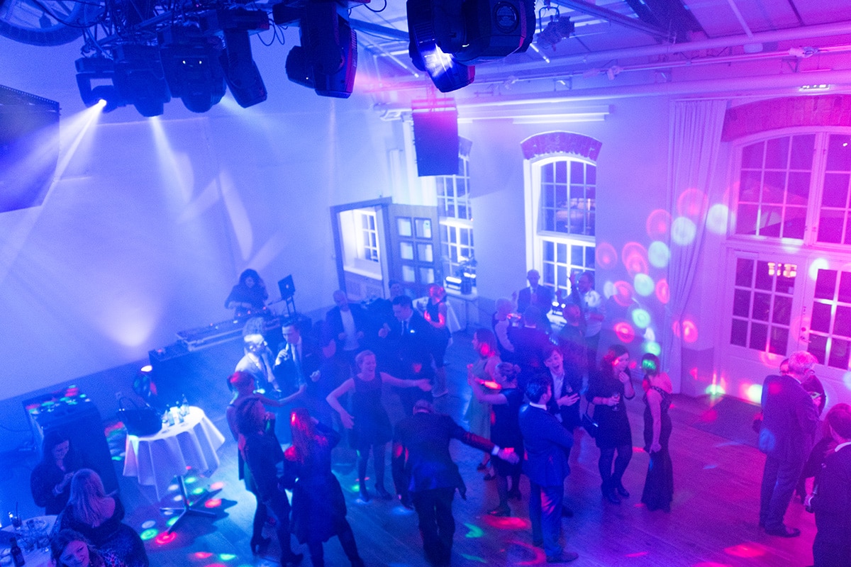 Menschen tanzen in einem festlich beleuchteten Raum während der European Excellence Awards 2015 in Stockholm.