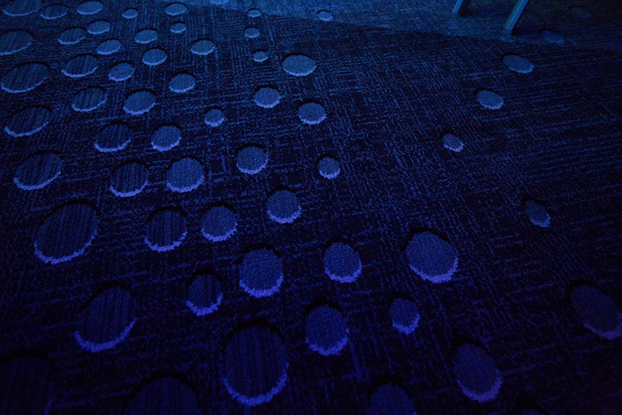 Bodenbelag mit blauen, runden Mustern auf dunklem Teppich bei den European Excellence Awards 2016 in Berlin.